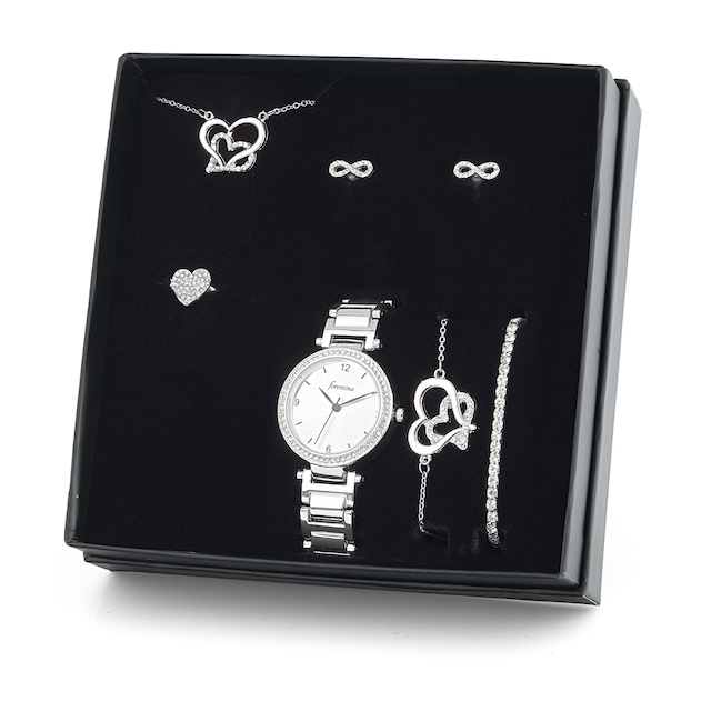 Forentina Gümüş Kaplama Çift Kalp Kolye Küpe Bileklik Saat -Hediy