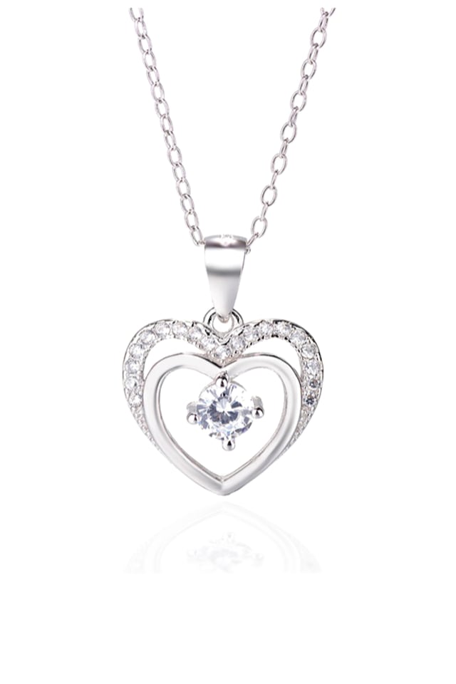 Gümüş Çift Kalp Tektaş Bayan Gümüş Kolye