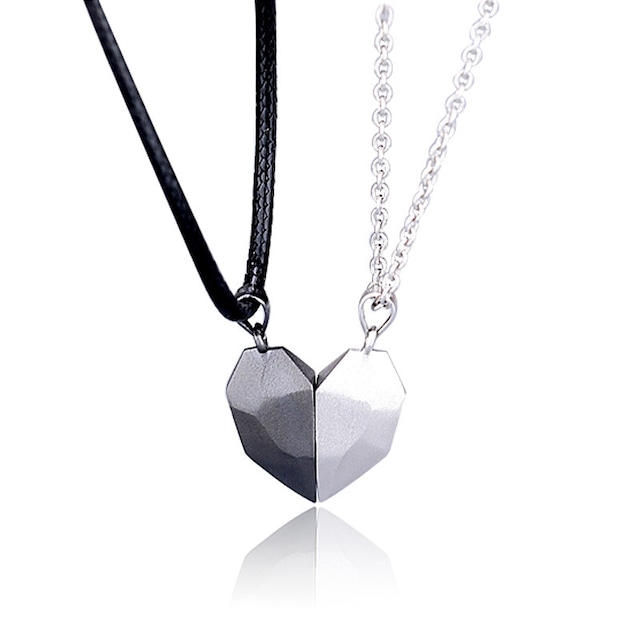 Gri Siyah İki Adet Mıknatıslı Çift Kalp Sevgili Metal Kolye Takı