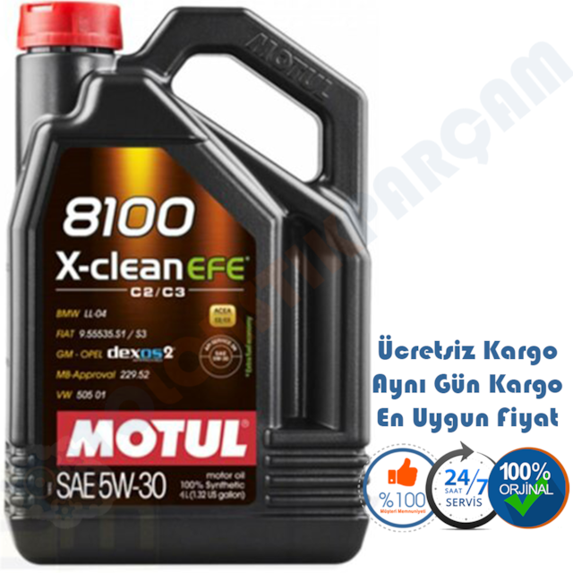 Motul 8100 X-Clean Efe C2/C3 5W-30 Tam Sentetik Motor Yağı 4 L