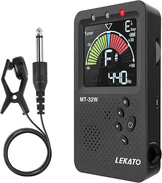 Gitar Metronom Tuner, LEKATO Şarj Edilebilir Tuner ile Büyük LCD Renkli Ekran Dijital Metronom Gitar Bas Keman Ukulele Kromat