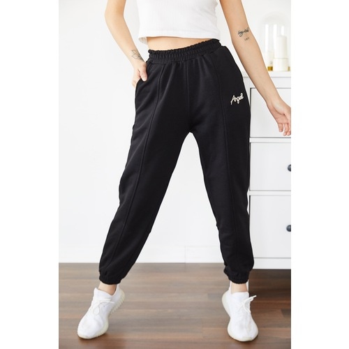 Xhan Siyah Angel Işlemeli Eşofman Altı