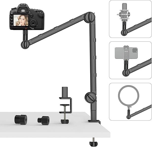 Mikrofon kolu, VIJIM LS25 profesyonel mikrofon standı, masa kelepçeli, 360° ayarlanabilir, 3/8 inç ila 5/8 inç adaptör, Blue