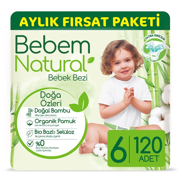 Bebem Natural Bebek Bezi 6 Numara XLarge Aylık Fırsat Paketi 120 Adet ürünü için anahtar kelimeler: