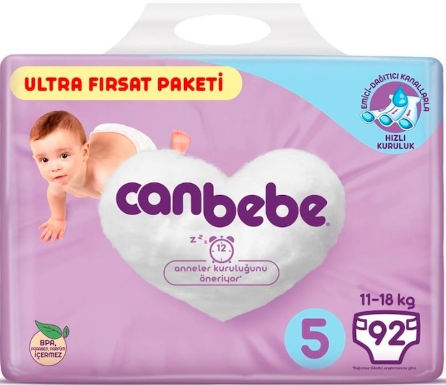 Canbebe Bebek Bezi 5 Numara Junior Ultra Fırsat Paketi 92 Adet ürünü için anahtar kelimeler: