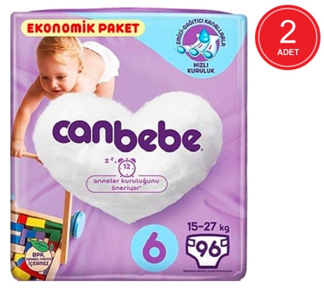 Canbebe Bebek Bezi 6 Numara Xlarge Aylık Ekonomik Paket 2 x 96 Adet ürünü için anahtar kelimeler: