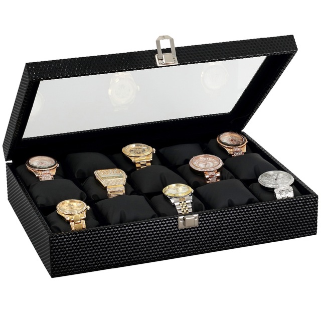 Chavin 15 Li Diamond Siyah Deri Ahşap Camlı Saat Kutusu St15-24 ürünü için anahtar kelimeler: