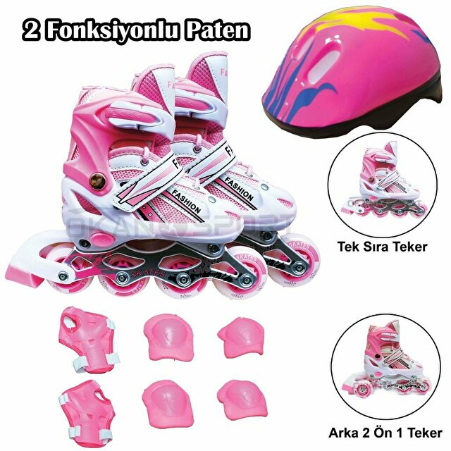 Çift Sıra Ayarlanabilir Çocuk Pateni Koruyucu+Kask Pembe ürünü için anahtar kelimeler: