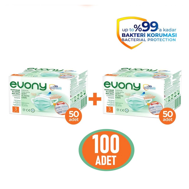 EVONY YUMUŞAK LASTİKLİ FULL ULTRASONİC MASKE 100 ADET