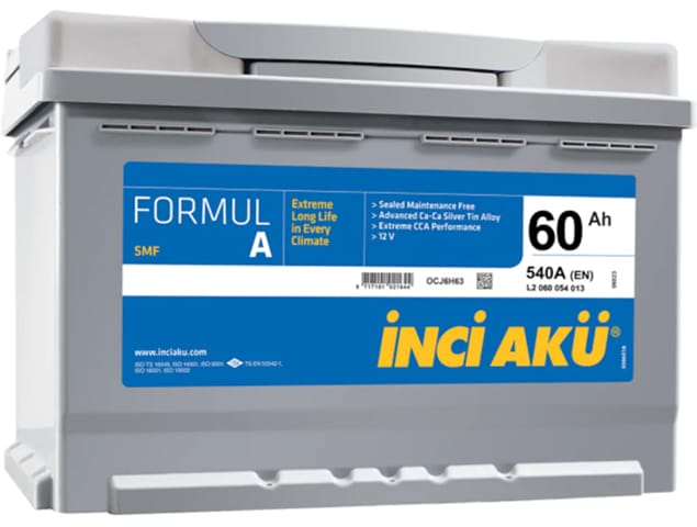 İnci Akü 12 Volt 60 Amper FormulA - 6 Ay Yol Yardım Hediye - 2019