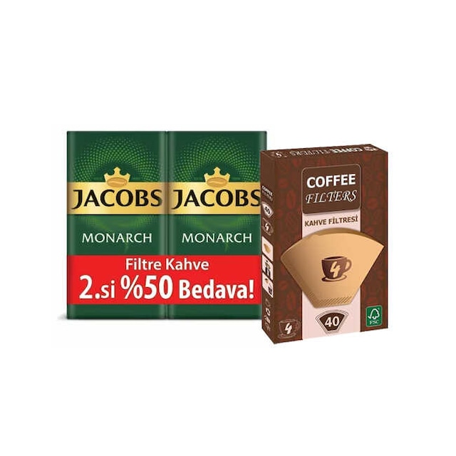 Jacobs Monarch Filtre Kahve 2 x 500 G + Coffee Filters Filtre Kağıdı 40'lı