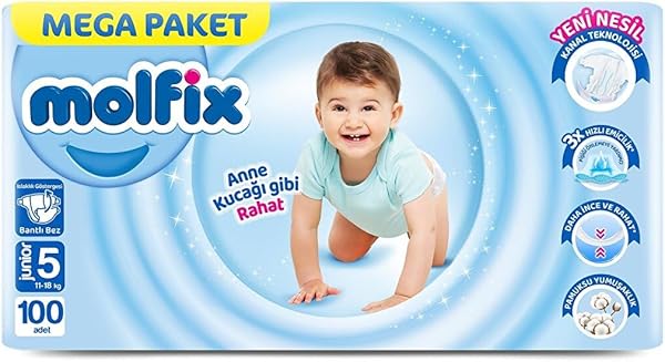 Molfix Mega Paket Bebek Bezi, Junior 5 Beden, 90+10 Adet, Yeni Nesil Rahat Teknoloji, 12-18 kg ürünü için anahtar kelimeler: