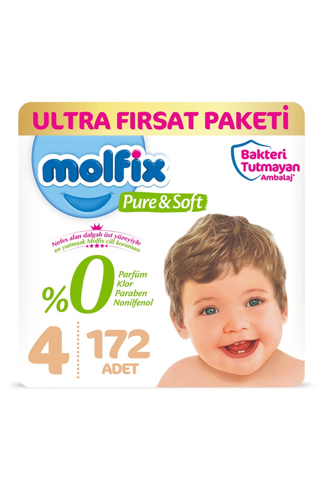 Molfix Pure&Soft Maxi Ultra Fırsat Paketi Bebek Bezi 7-14 KG 4 Beden 172 Adet ürünü için anahtar kelimeler: