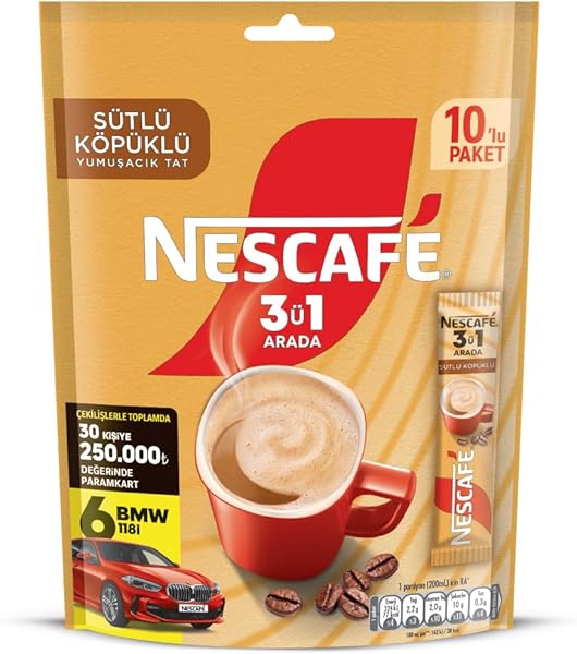 NESCAFÉ 3'ü 1 Arada Sütlü Köpüklü Çözünebilir Kahve Karışımı 120 Adet, 17,4 g x 12 ürünü için anahtar kelimeler: