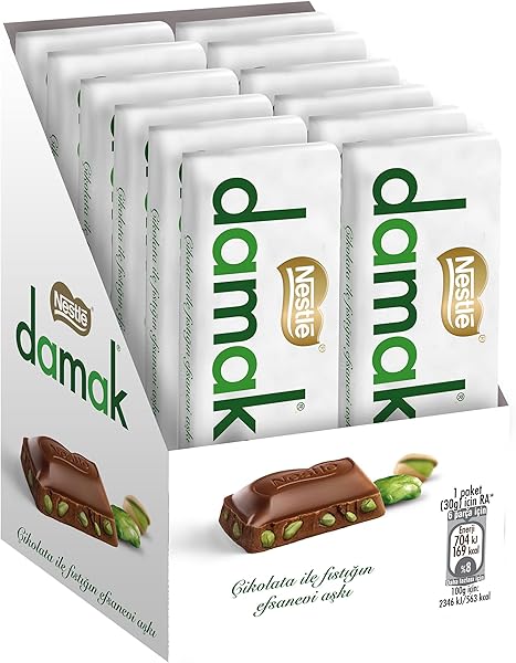 Nestlé Damak Antep Fıstıklı Sütlü Çikolata, Baton, 30 g x 12 Adet ürünü için anahtar kelimeler: