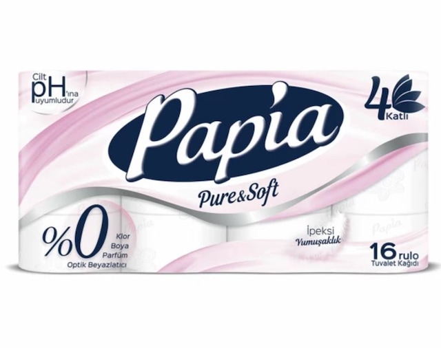 Papia Pure & Soft 4 Katlı Tuvalet Kağıdı 3 x 16 Rulo ürünü için anahtar kelimeler: