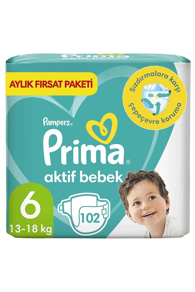 Prima Aktif Bebek 6 Beden Ekstra Large Bebek Bezi Aylık Fırsat Paketi 102 Adet ürünü için anahtar kelimeler: