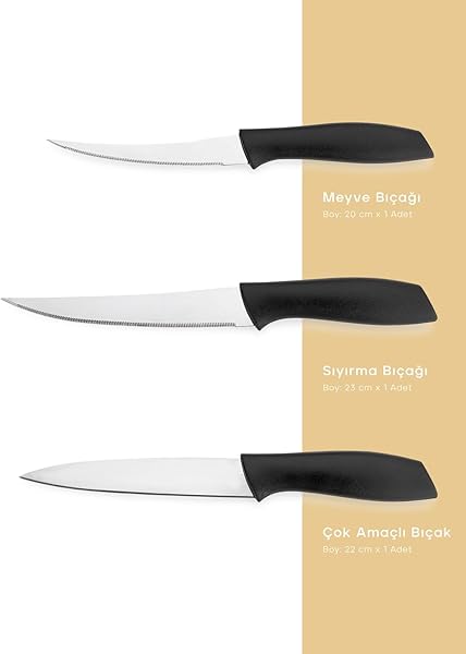 Schafer Quick Chef Bıçak Seti 3 Parça-Siyah ürünü için anahtar kelimeler: