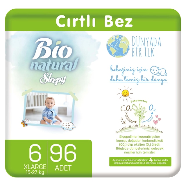 Sleepy Bio Natural Bebek Bezi 6 Numara XLarge 96 Adet ürünü için anahtar kelimeler: