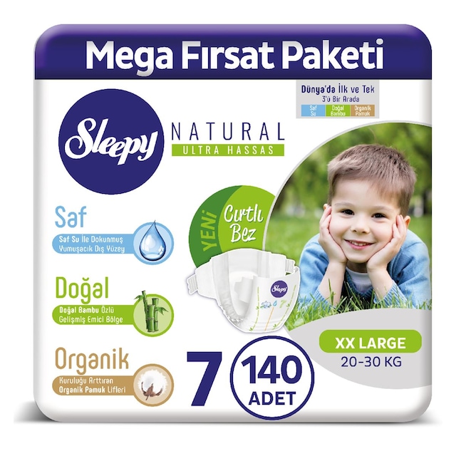 Sleepy Natural Bebek Bezi 7 Numara Xxlarge 140 Adet Mega Fırsat Paketi ürünü için anahtar kelimeler: