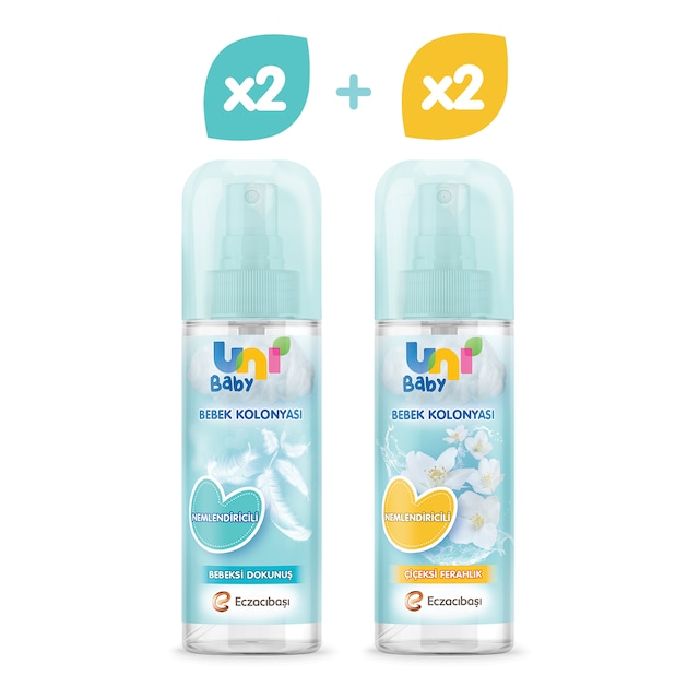 Uni Baby Bebek Kolonyası Bebeksi Kokular 2'li + Çiçeksi Kokular 2'li ürünü için anahtar kelimeler: