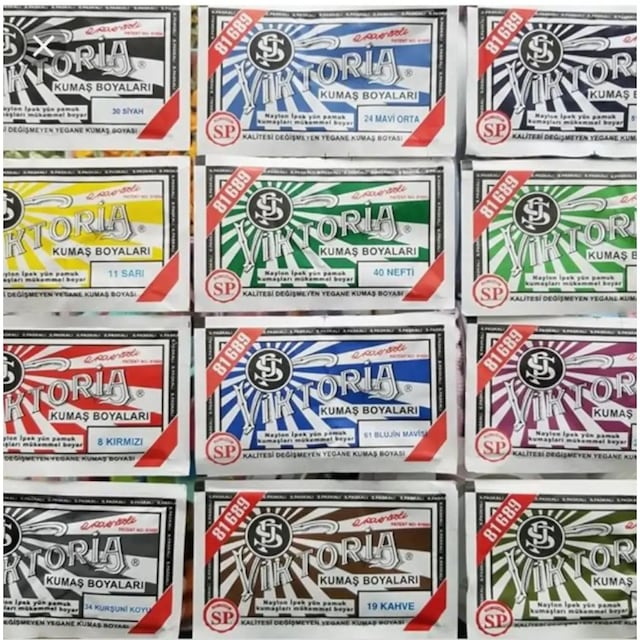 VİKTORİA TOZ KUMAŞ BOYASI ÇEŞİTLERİ RENK RENK STOKLU ÜRÜNLER ürünü için anahtar kelimeler: