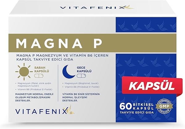 Vitafenix Magna P Magnezyum Complex - Malat Sitrat Glisinat Taurat ve B6 ile Gece Gündüz Kapsül Magnezyum Takviyesi ürünü için anahtar kelimeler: