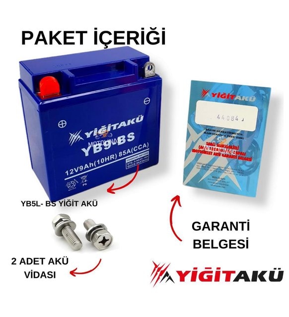 Yiğit Akü 12 V 9 Ah-Amper Motosiklet Aküsü Yb9-BS 2023 ürünü için anahtar kelimeler: